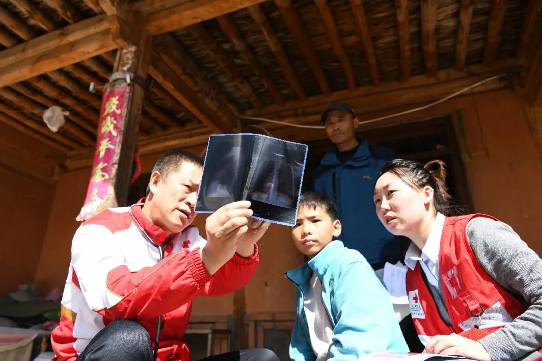 ▲医疗专家来到曾经接受过救助的孩子家里,为孩子们做复诊检查。摄影:牛宏超