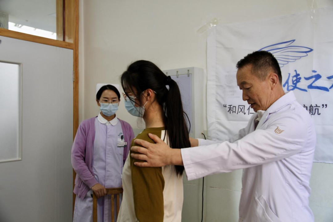 ▲医疗专家为患者进行检查(摄影:陶冉)